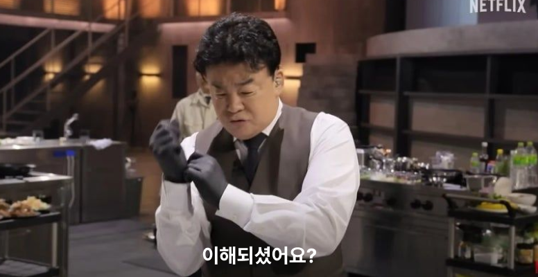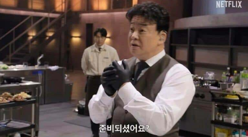 한 쪽은 가니쉬를 만들고 나머지 다른 쪽은 청소하는 모습