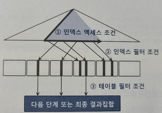 인덱스 스캔 효율서은 인덱스 컬럼을 조건절에 모두 등치(=) 조건으로 사용할 떄 가장 좋다.