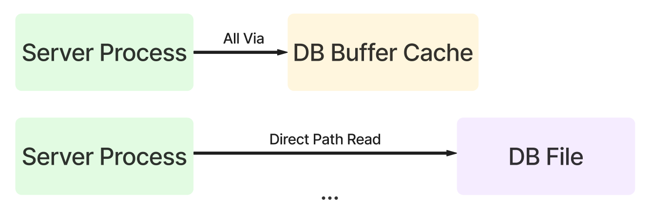 Direct Path I/O를 제외한 모든 블록 I/O는 메모리 버퍼캐시를 경유