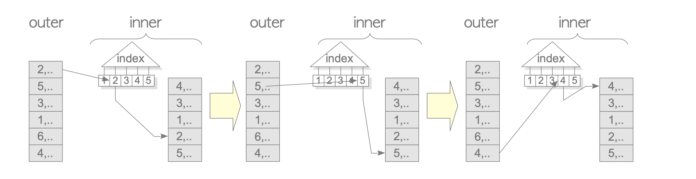 테이블에서 하나의 행을 선택하는 Outer Loop, 조인 조건에 맞는 모든 행을 순회하는 Inner Loop