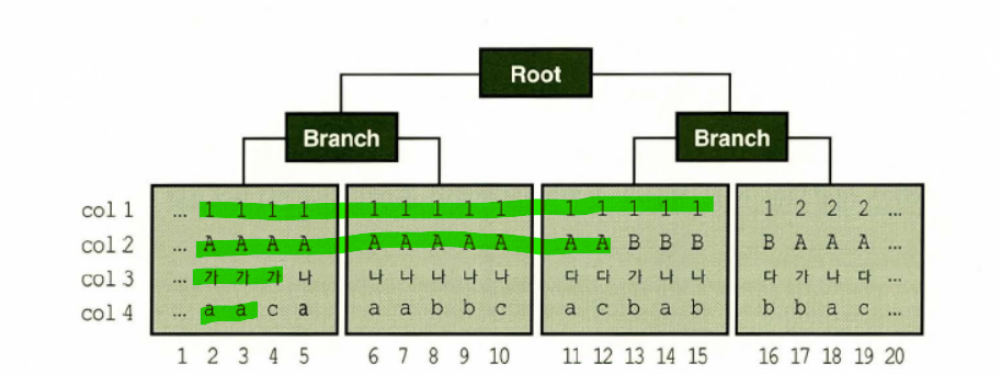 테이블과 달리 인덱스에는 같은 값을 갖는 레코드들이 서로 군집