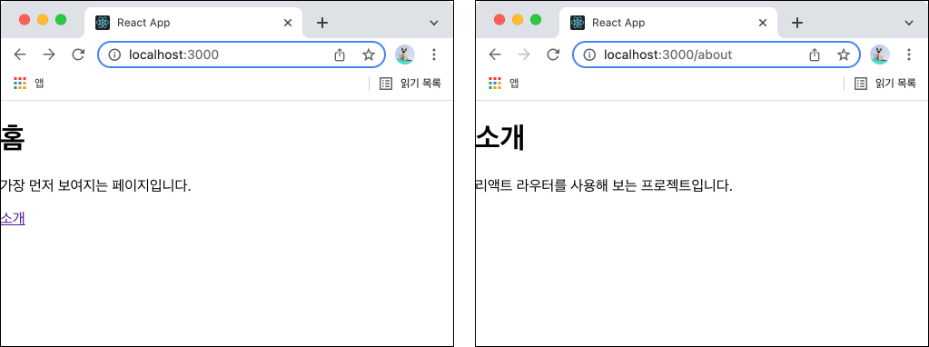이제, 브라우저에서 우리가 방금 만든 소개 링크를 눌러보세요. About 페이지가 보여졌나요?