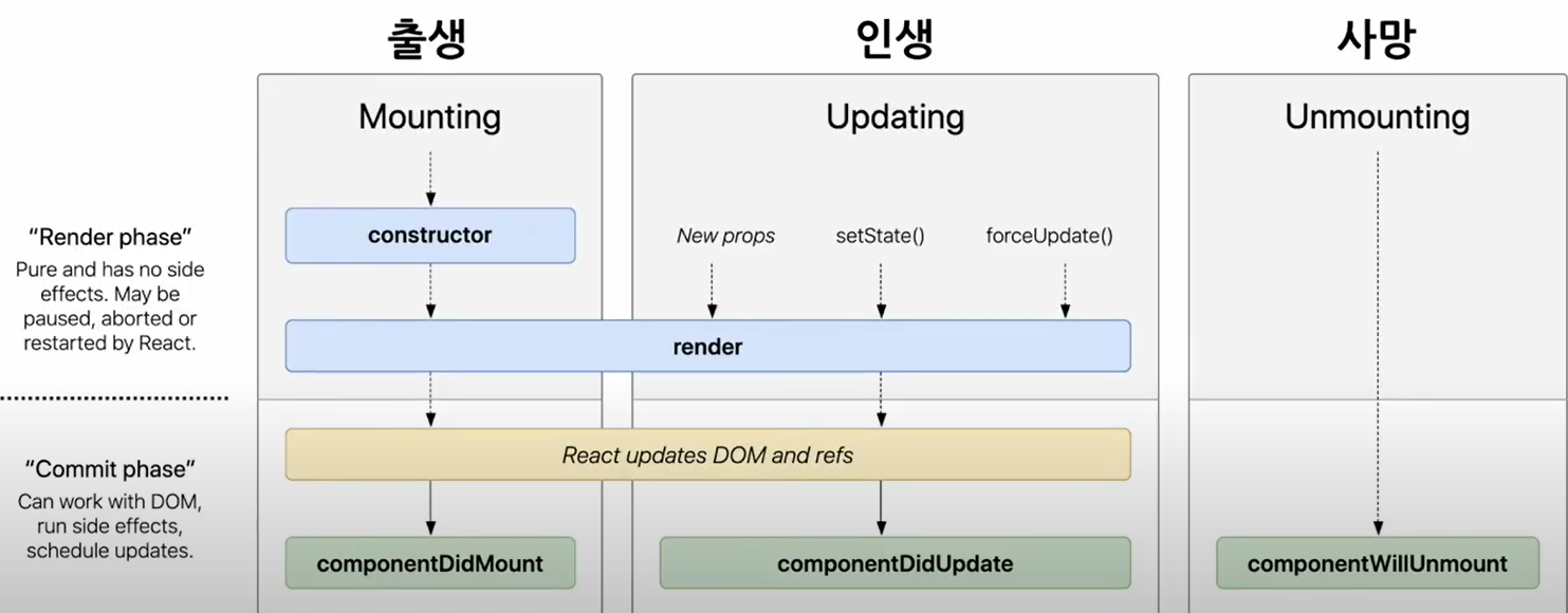 ✔ 이 때는 props가 변경되거나, setState()에 의해 state가 변경되거나, forceUpdate()라는 강제 업데이트 함수로 인해 컴포넌트가 다시 렌더링된다.