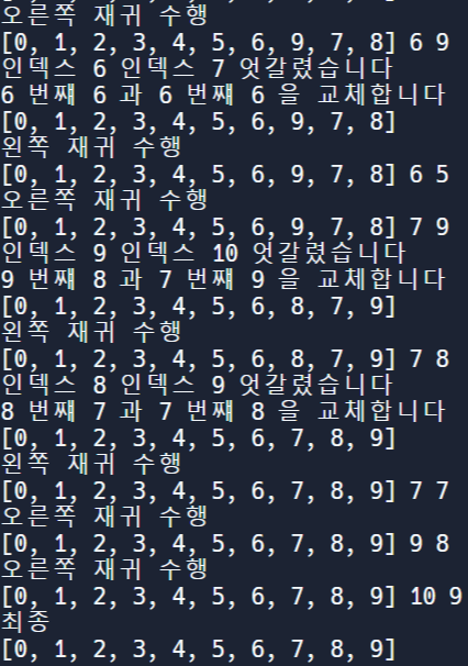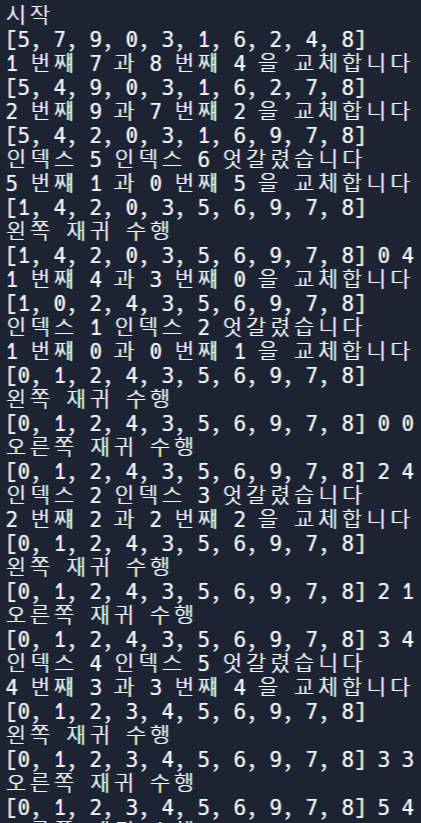 else: # 엇갈리지 않았다면 작은 데이터와 큰 데이터를 교체