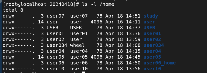 사용자 계정 user08,09의 홈디렉터리가 확인은 되지만.