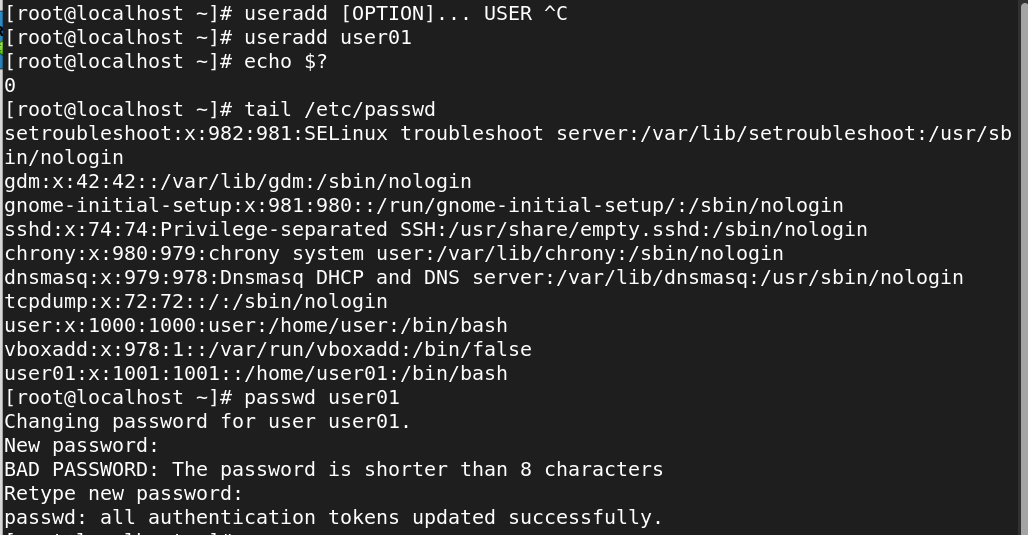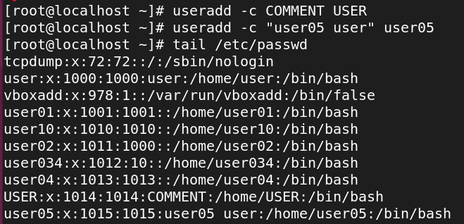| -p 패스워드 | 사용자를 생성할 때 패스워드를 지정한다. 이 옵션을 사용하면 /etc/password 의 두 번째 필드에 패스워드가 저장된다. 현재 사용 x |