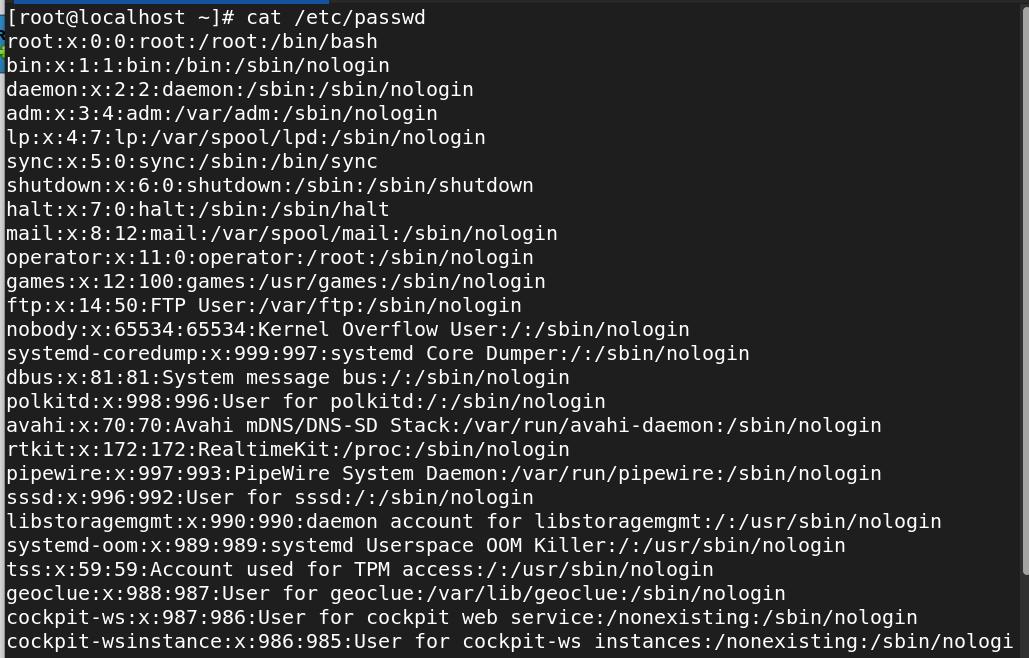 USER:x:UID:GID:GECOS:HOME:SHELL