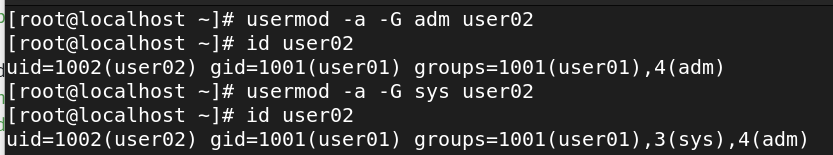 보조그룹(Sulpplementary Group): 주그룹 이외의 그룹, -G 옵션 사용하여 추가