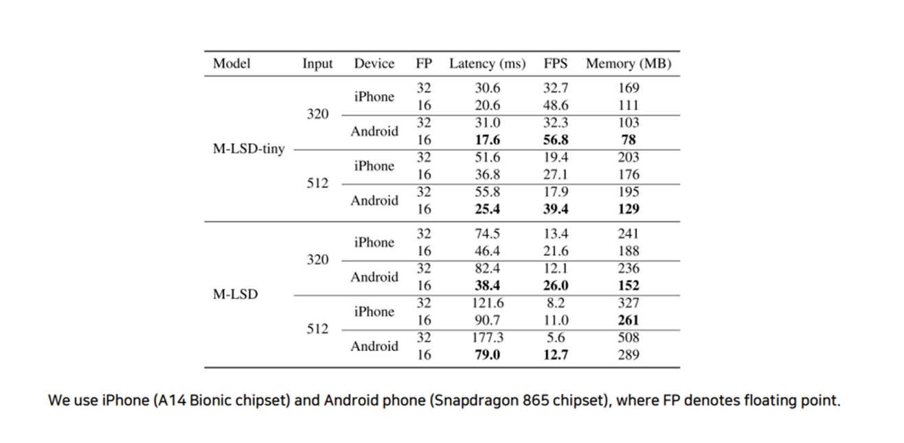 그리고 이 M-LSD의 가장 큰 장점은 mobile에서도 real-time으로 우수한 성능을 보여준다는 것이다.