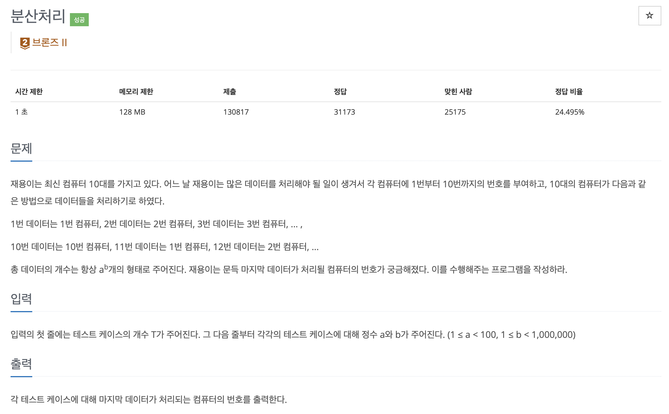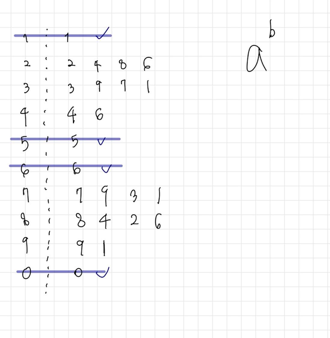 처음에는 a**b % 10 을 이용하여 간단하게 처리할 수 있는 코드라 생각했습니다.