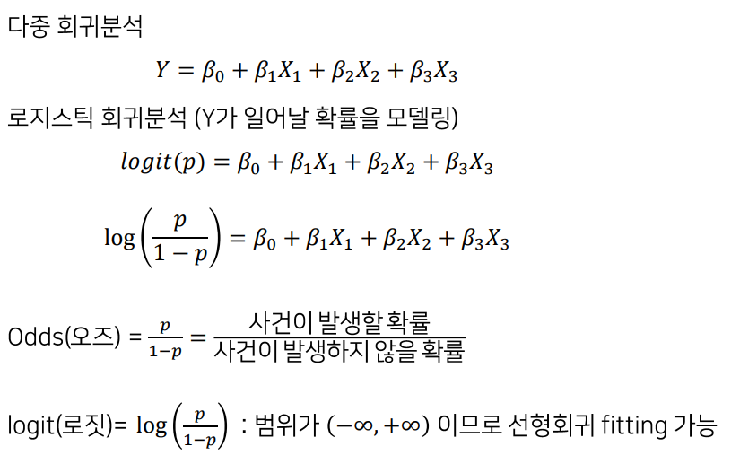 회귀모텔에서 종속변수의 값의 형태가 연속형 숫자가 아닌 범주형 값인 경우를 다루기 위해서 만들어진 통계적 방법