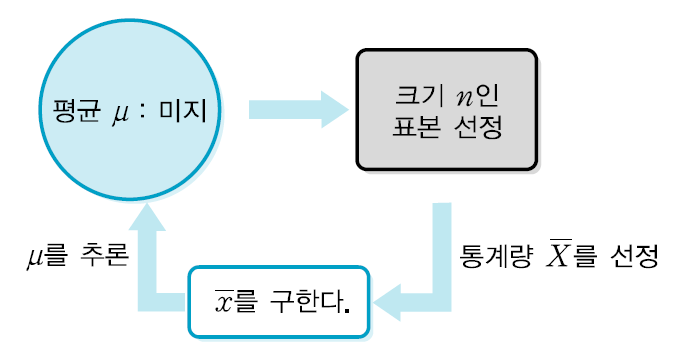 #모집단을 따르는 정규분포, 하지만 모수에 대한 정보가 없음