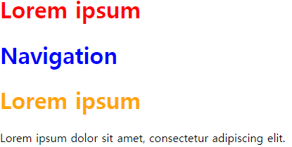| 동위 선택자 | 선택자+선택자 | h1+div |
