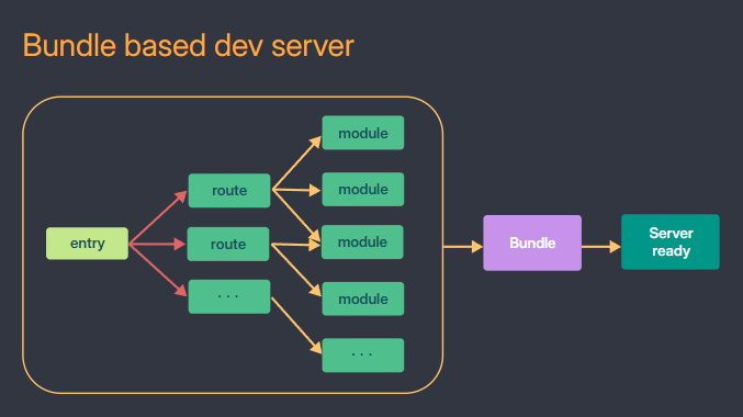 Webpack과 같은 전통적인 번들 기반 방식에서는 모든 소스 코드를 분석하고 이를 하나 또는 여러개의 번들 파일로 묶는 과정이 필요했다.
