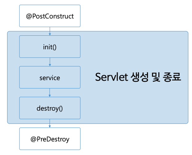 @PostConstruct는 Servlet 객체가 생성된 후, init() 메서드가 호출되기 전에 실행됩니다. 이 어노테이션은 초기화 작업이 필요한 경우에 유용합니다.