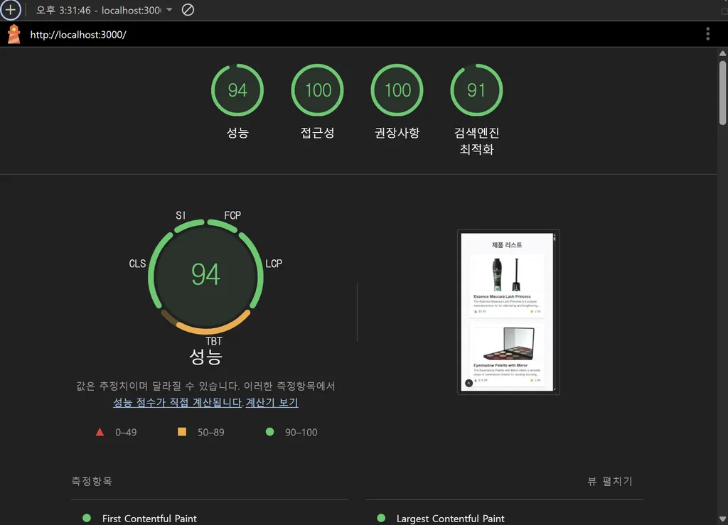 Lighthouse: 78점 | Lighthouse: 94점 |