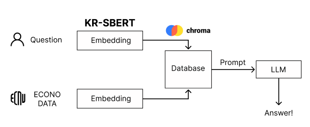 사용자가 질문을 인풋으로 입력하면 임베딩을 거쳐 데이터베이스에서 가장 유사한 데이터를 검색합니다.
