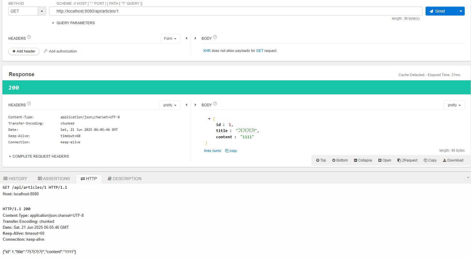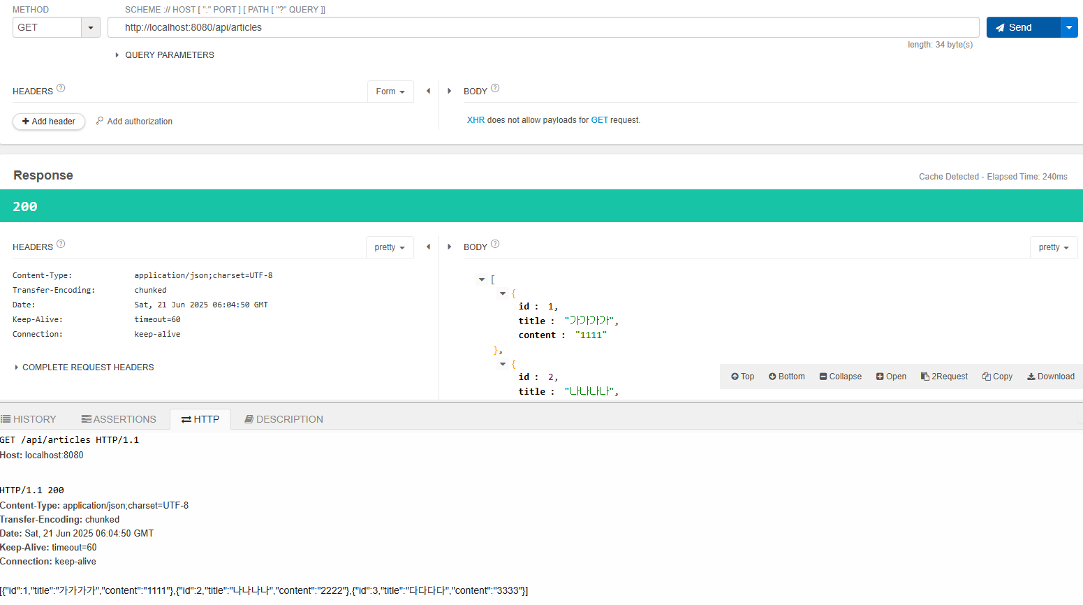 이제 GET 요청이 잘 되는지 확인해보면