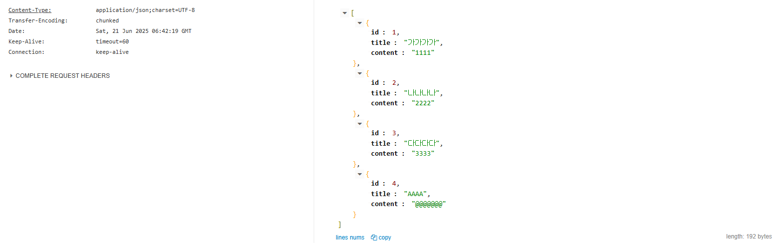 단일 게시글 반환도 됨을 확인할 수 있다.