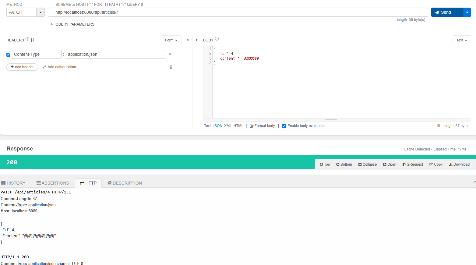 이제 PATCH 요청으로 수정이 잘 되는지 확인한다.