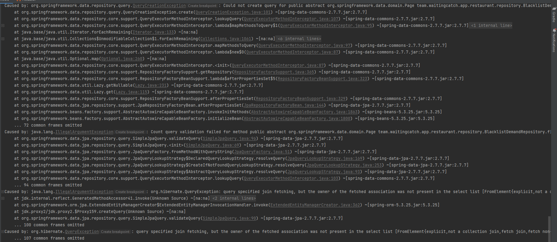 Error : An error occurs when paging and join fecth are used together in JPQL.