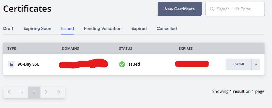 After signing up, click the New Certificate button on the Dashboard.