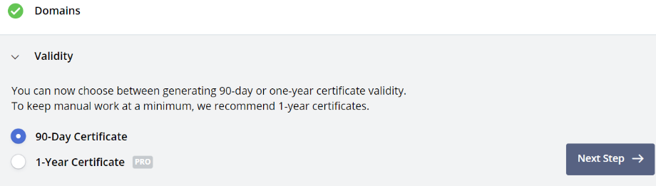 Select the certificate for the next 90 days.