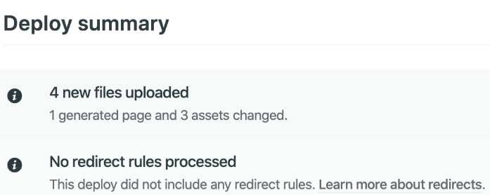 However, when I look at the deployment, it says there is no redirect rule.