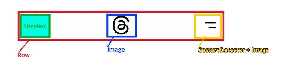 💡 빈 Sizedbox를 넣을 때 width 값을 가장 우측에 있는 메뉴 위젯의 사이즈만큼 지정해야 정확하게 로고가 가운데에 위치한다.