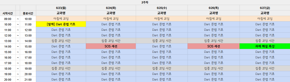 π± λ€μ μ£Όμ°¨μλ 본격μ μΌλ‘ Dart λ¬Έλ² κΈ°μ΄μ λν΄ μ§νλ κ² κ°μμ κΈ°λλλ€!