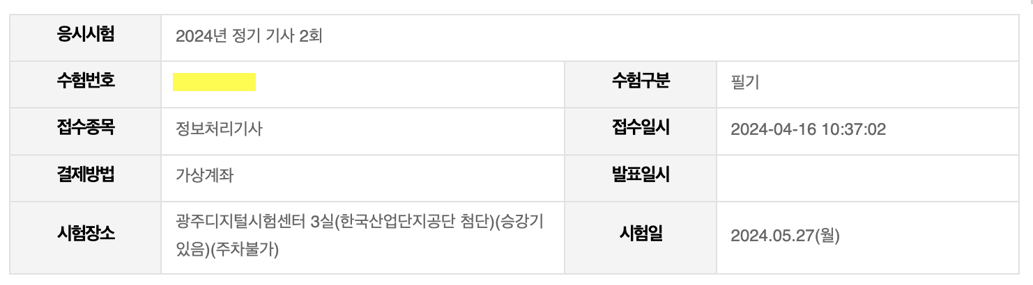 정보처리기사는 1년에 총 3회만 열리는 자격증 시험인데요, 저는 2회차 접수를 하게 되었습니다.
