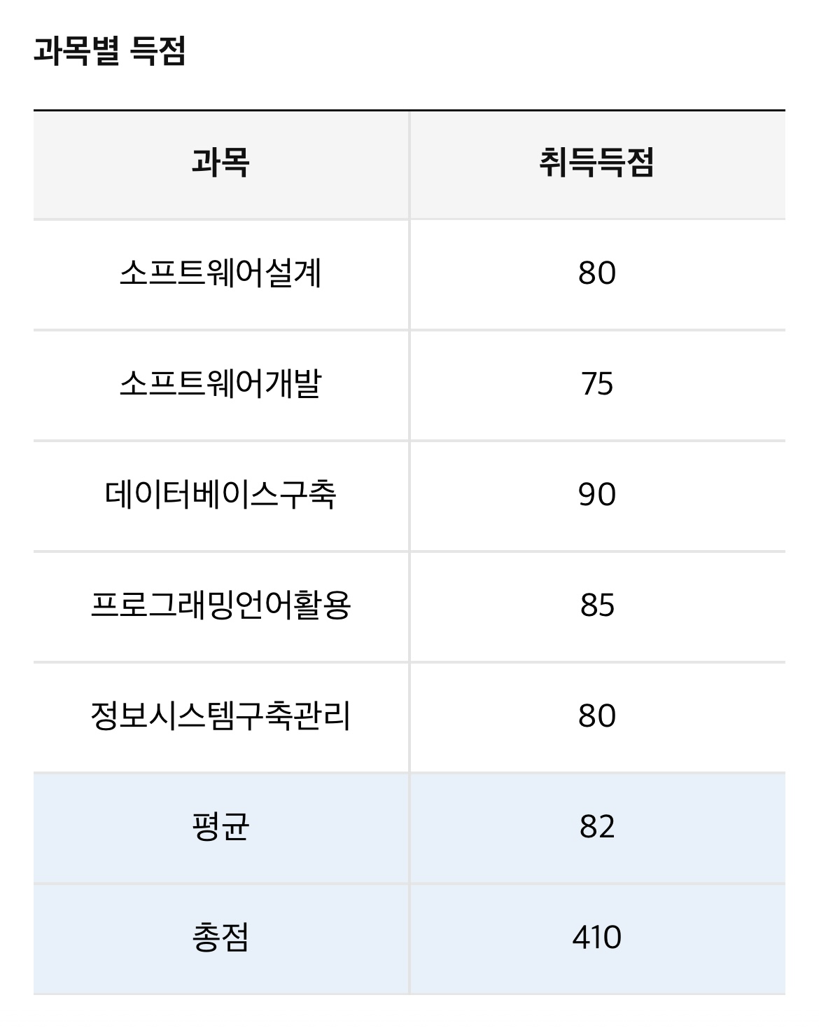 프로그래밍 언어가 익숙하지 않으신 분들은 과락은 나오지 않게끔 기초 지식은 꼭 공부하시고, 다른 과목의 점수를 높여서 합격하시는 게 더 유리할 수도 있겠다는 생각이 듭니다!