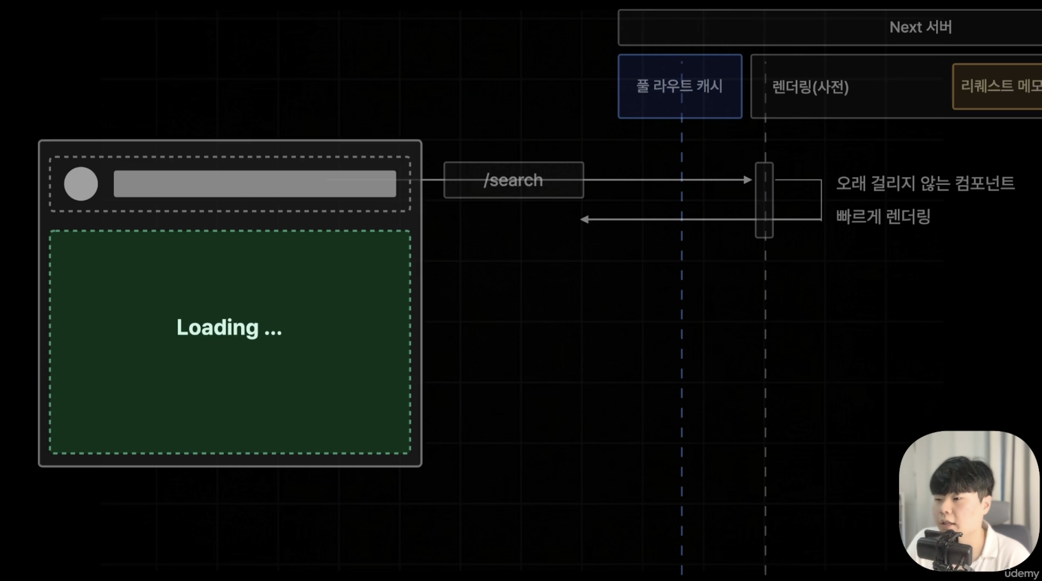 비동기작업이 없는 렌더링 작업이 빨리 되는 페이지는 먼저 보여주고, 비동기작업이 포함된 비교적 렌더링이 느린 경우 스트리밍을 이용한다. ⭐️ 스트리밍은 Dynamic page