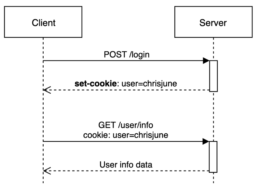 • 클라이언트와 첫 번째 통신에서 데이터를 주고받았다고 해도, 두 번째 통신에서 이전 데이터를 유지하지 않는다. 하지만, 실제로는 데이터 유지가 필요한 경우가 많다