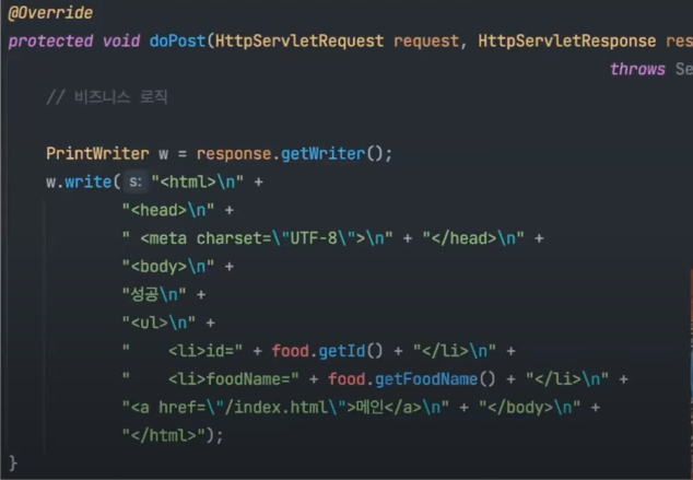 JSP가 비즈니스 로직과 HTML(View) 코드가 분리되지 않음