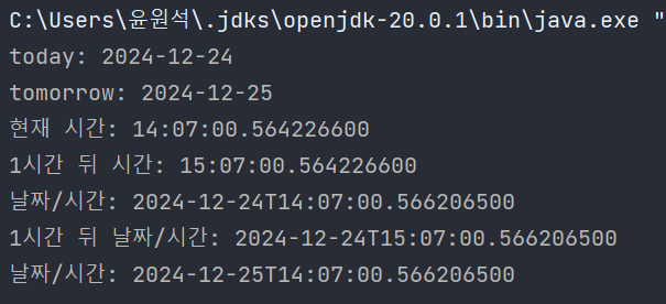 System.out.println("1시간 뒤 날짜/시간: "+laterTime);