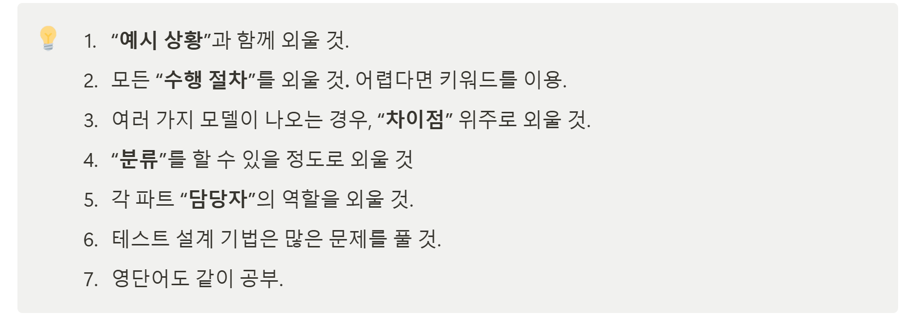 하지만 이렇게 공부한 첫 시험에서 1문제 차이로 떨어졌고, 말장난 문제를 위해 주의할 점도 같이 기입해서 외워야겠다 싶었습니다. 문제를 풀면서 헷갈렸던 문항들을 중요 표시하고 보기 시작했죠.