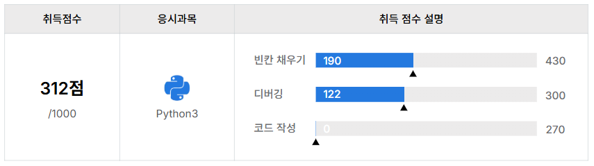 결과는 참담했다. 312점...