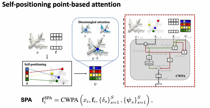그 후, SP 포인터의 feature와 위치, 원래 가지고 있던 input의 feature와 위치로 SPA(Self-positioning point attention)을 구성하게 됨.