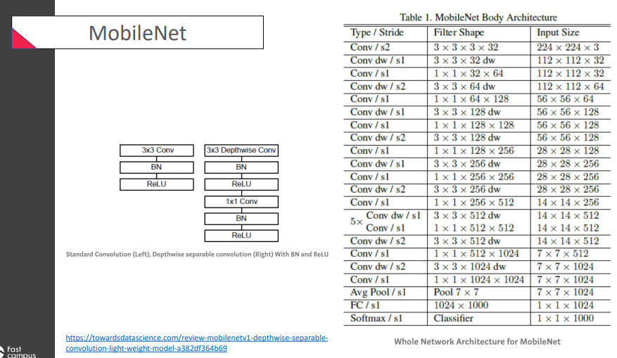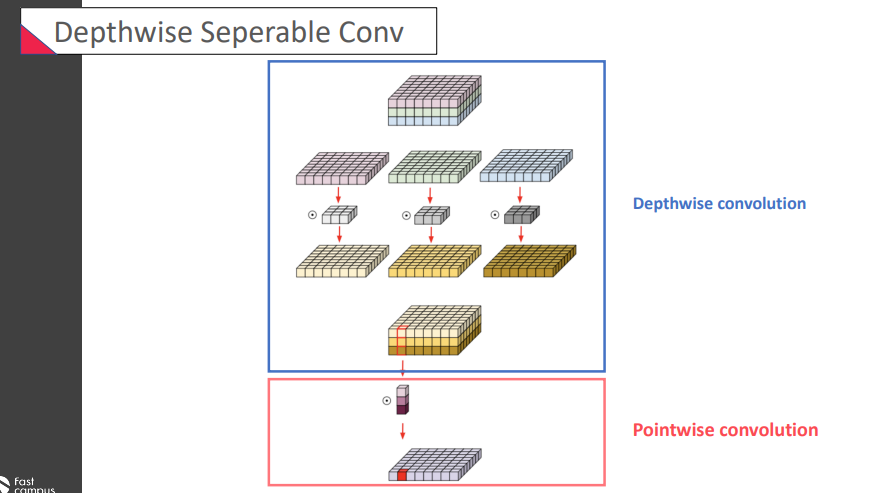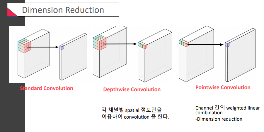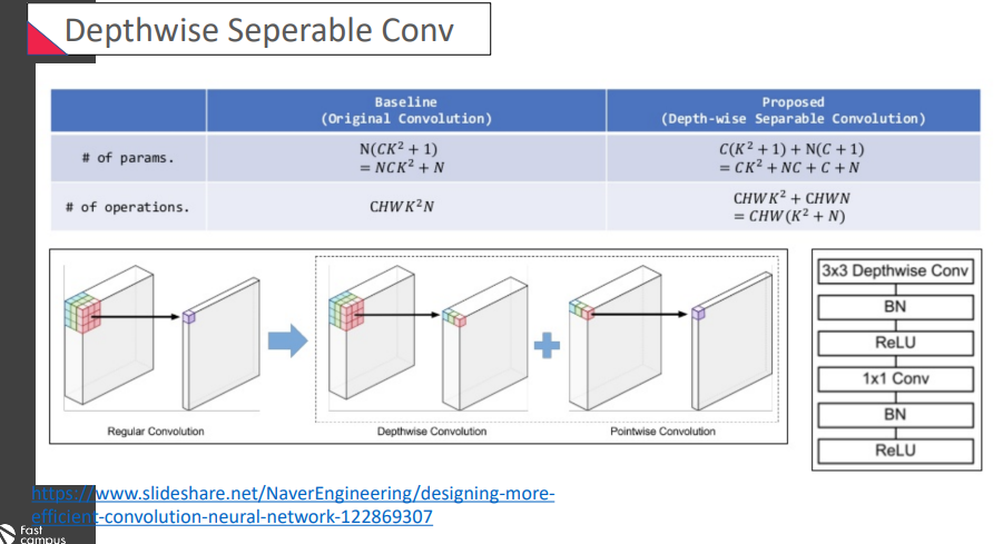 가장 유명한 것은 Depthwise separable convolution이 주목을 받음!