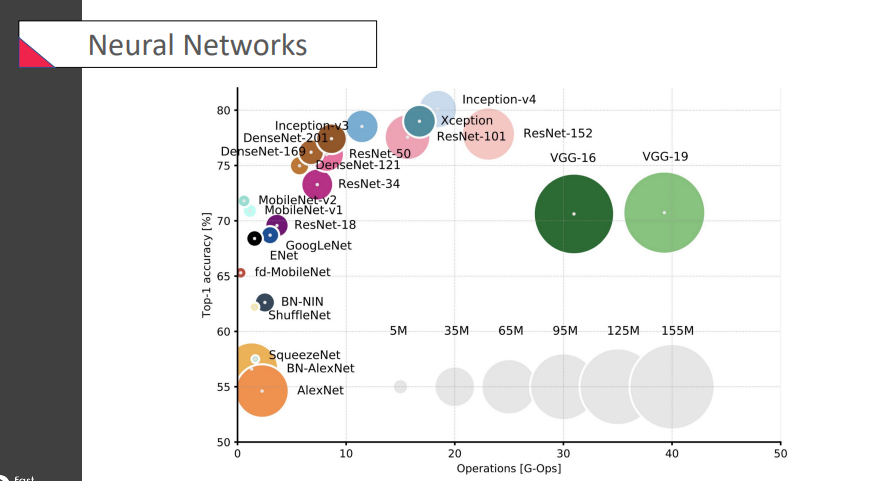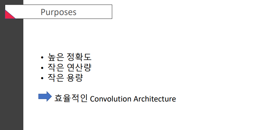 accuracy가 그렇게 가장 중요한 것은 아님! 실제로 우리가 사용할 때 속도나 용량도 매우 중요하다고.그래서 weight을 줄이자.. 연산속도를 줄이자.. 이런 제안들이 많이 나오고 있음 (추세) -> 효율적