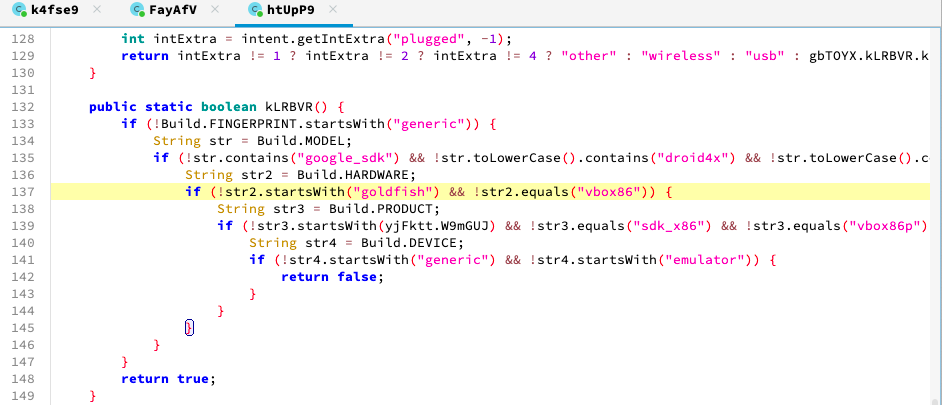 이외에도 AVD나 vbox 기반의 에뮬레이터 등 탐지와, USB 디버깅 여부 등을 검사하는 등의 코드가 존재합니다.
