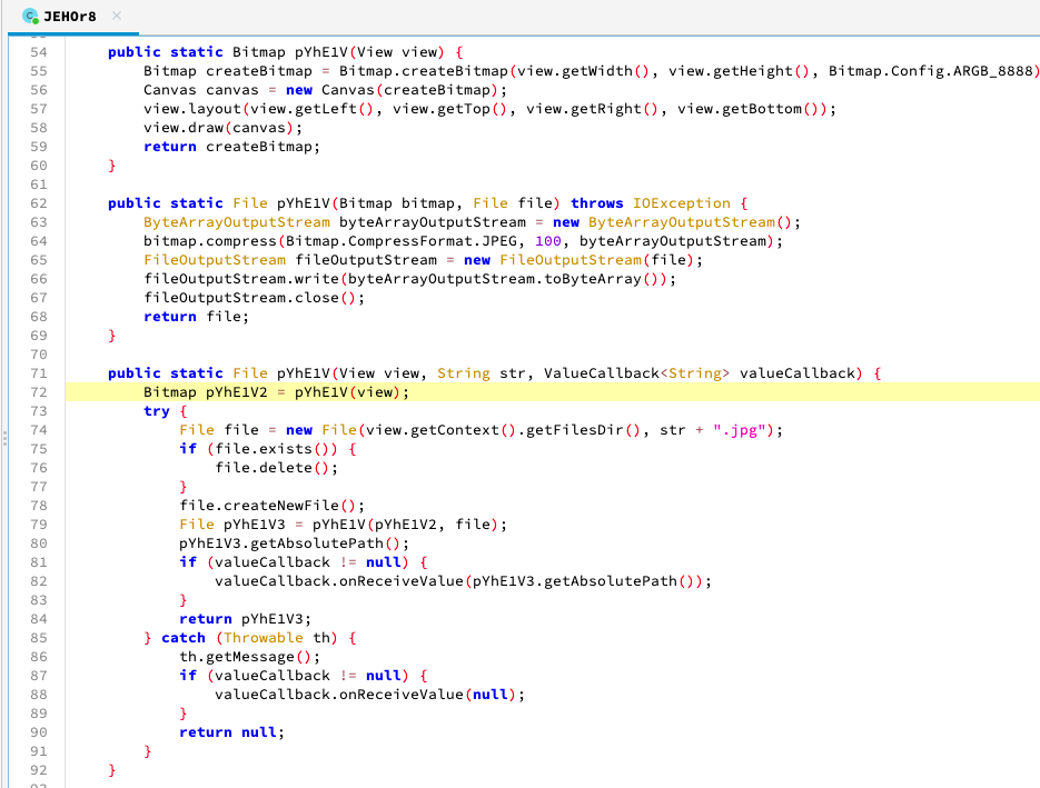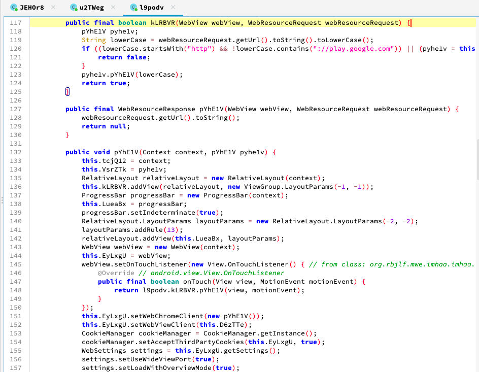 이외에도 특정 뷰를 캡쳐하여 .jpg 파일로 저장하거나, 웹뷰의 URL이 구글 플레이 스토어인지 확인하고, 필요한 경우 추가 동작을 진행하는 코드 또한 존재합니다. 추후 기회가 된다면 해당 앱의 정확한 악성 행위 및 C2 통신 방식 등을 파악하여 분석해보는 것도 좋은 경험이 될 것 같습니다.