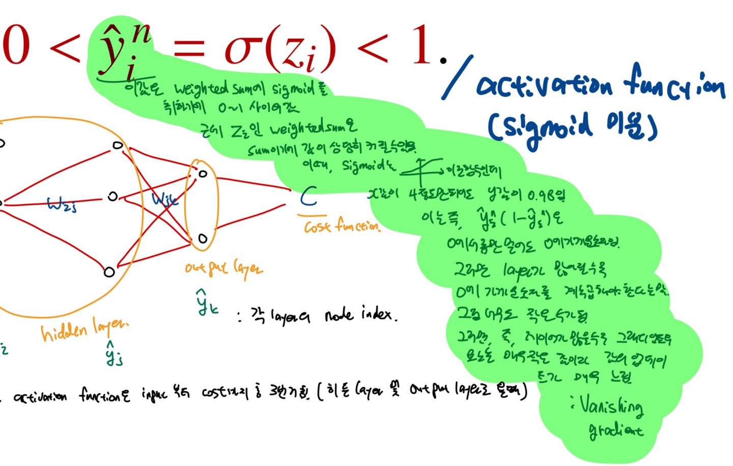 - 이유 : activaion function인 sigmoid 함수의 미분의 특성 :