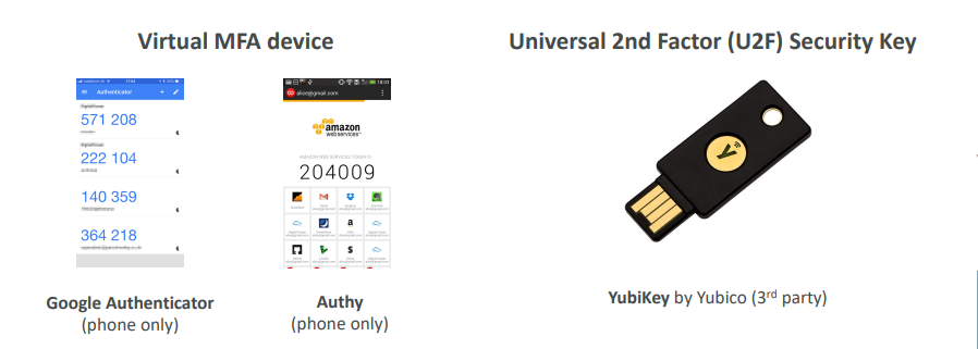AWS에서 제공하는 다양한 MFA 장치 옵션은 다음과 같다.
