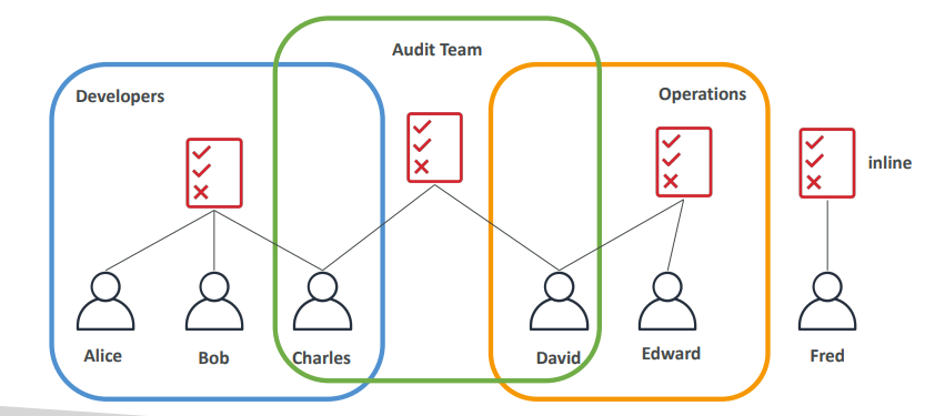 - 각 그룹은 서로 다른 정책을 가질 수 있으며, 예를 들어 운영팀의 David와 Edward는 개발자 그룹과 다른 정책을 적용받을 수 있다.
