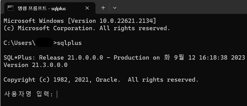 다운로드가 완료 되었으면 cmd(명령어 프롬포트)에 'sqlplus'를 입력했을 때 이렇게 나오는지 확인해보세요. 이렇게 나온다면 정상적으로 다운로드 된 것입니다!