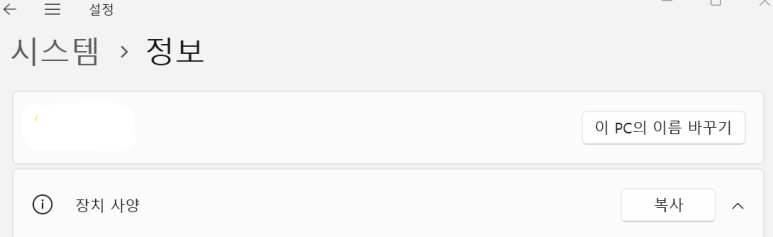 '이 PC의 이름 바꾸기'를 눌러 PC의 이름을 영어로 바꿔주세요. 그런 뒤 위에 적은 대로 따라하시면 제대로 설치 되는 걸 볼 수 있습니다.