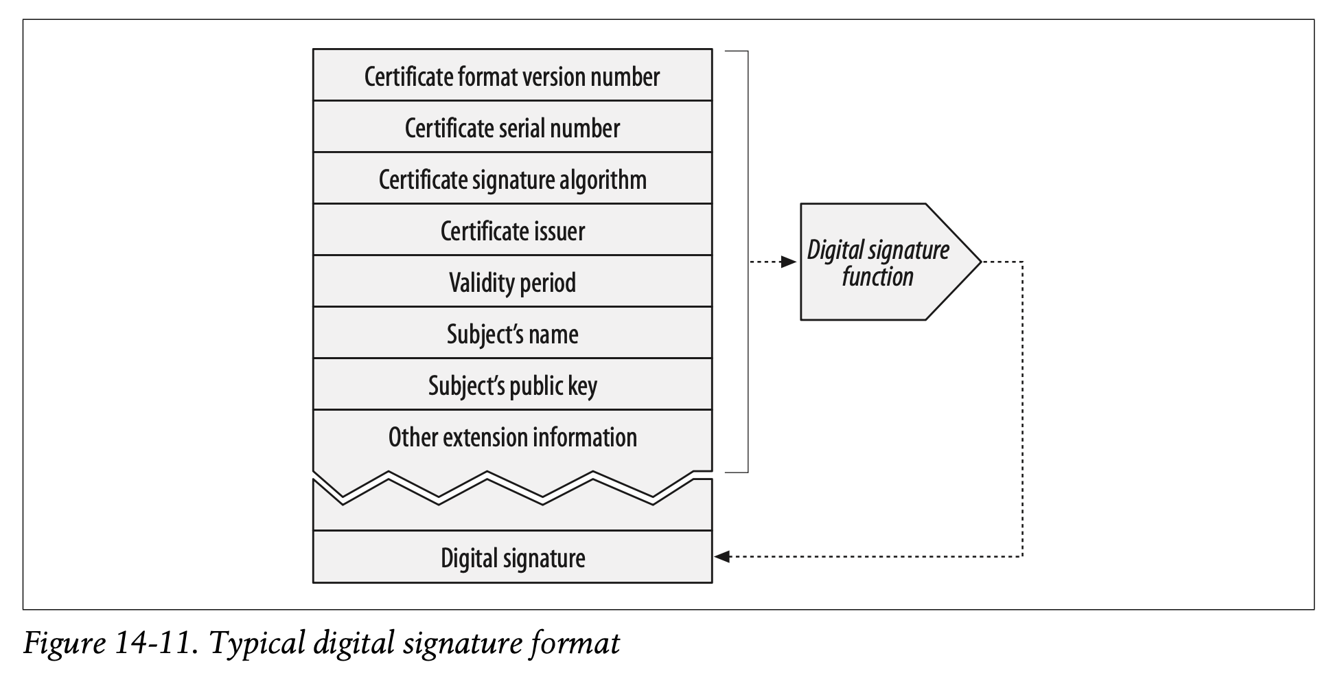 인증서의 일반적인 구조는 Figure 14-11에 나타난 것과 같습니다.